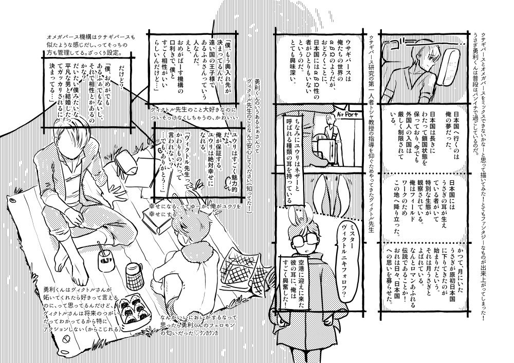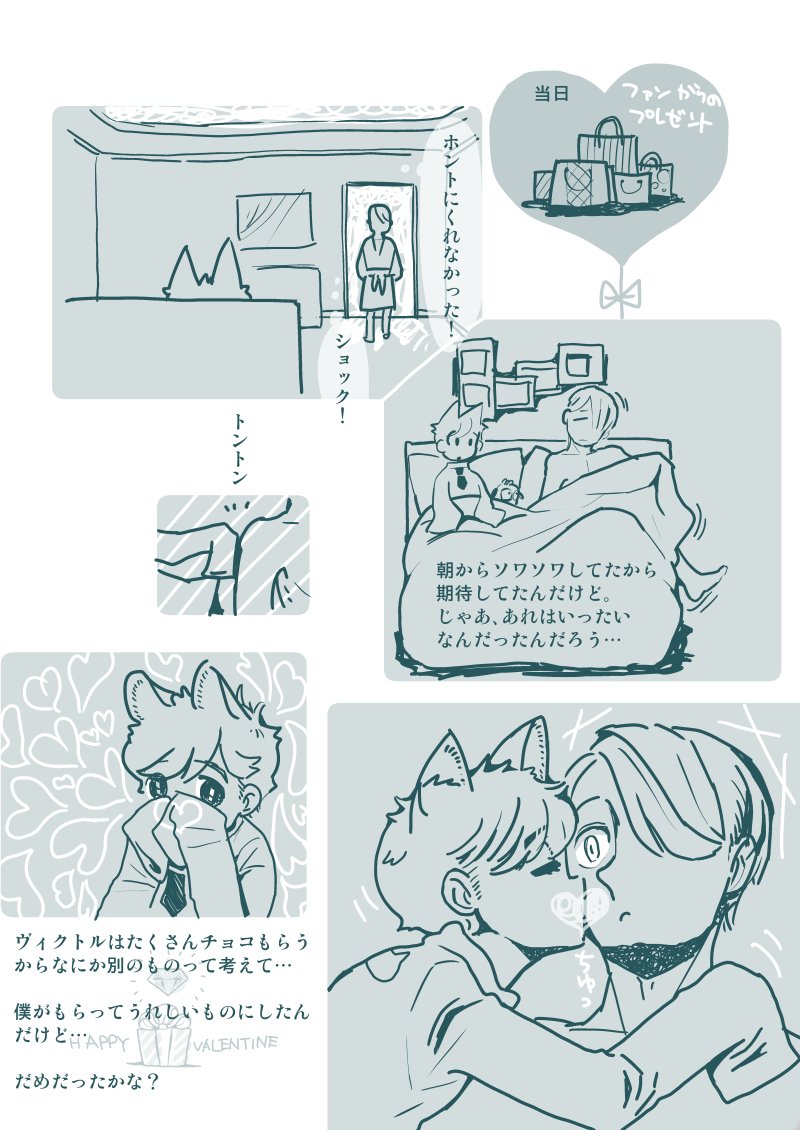 #10月4日は天使の日 らしいので😊 #落書き ネコミミ勇利くんに羽をつけてたかいたかいするヴィクトルさん