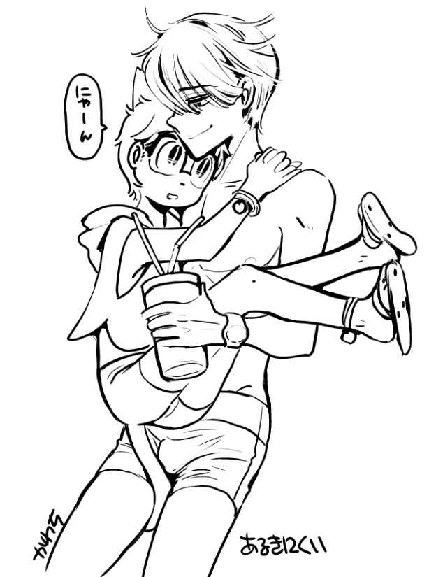 1 37 #進捗 まとめ本の落書きの書き下ろしページですが、イチャイチャ成分が足りなかったのでイチャイチャさせました。 鼻キス画像検索するとネコチャァンがいっぱいでてくる💗 お尻描くのが好き🍑 19/05/16 10:22