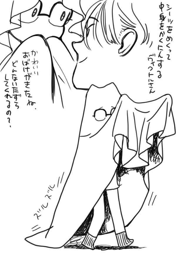 ハロウィン #落書き 洗濯物のシーツをたたもうとして失敗するアンドロ勇利くん。でも面白かったのでそのままヴィクトルさんに見せに行く。「と、とりっくおあとりーと…」