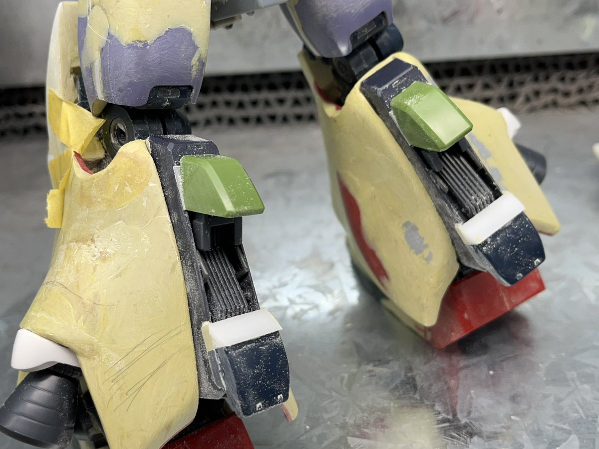 【今年もオラザク用のガンプラ作る35-2】長いリアアーマーの裏側もMGサザビーのパーツを利用してディテール追加、太もも裏もディテール追加、足首関節もサザビーのパーツを利用して…(´‐ω‐) #ガンプラ #ガンダム #ガンプラ好きと繋がりたい #ガンプラの画像貼るとRTされると聞いて