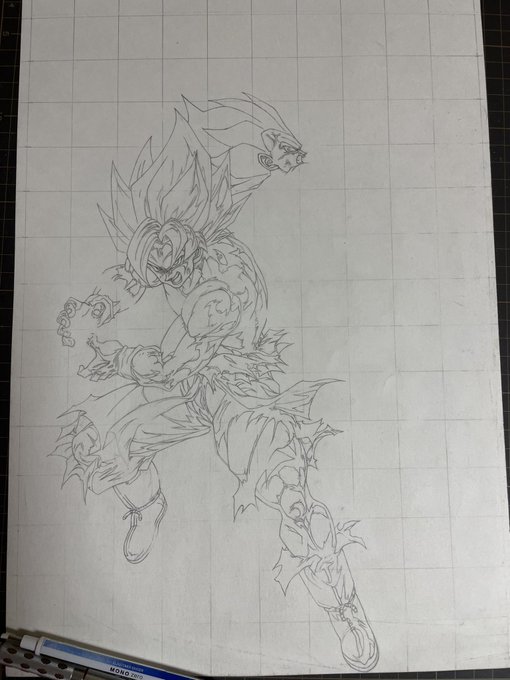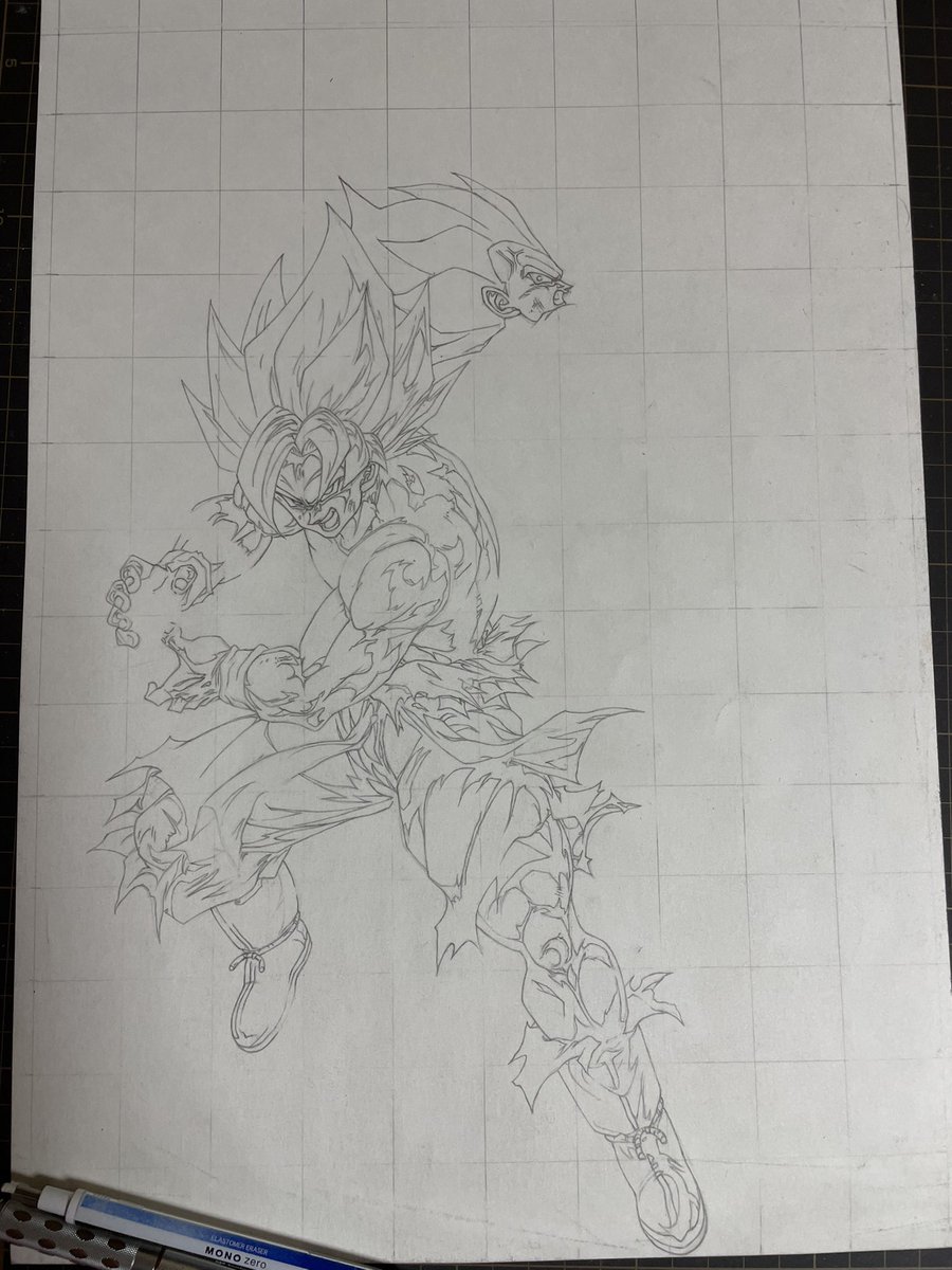 ベジータの顔にマルチライナーのインクがボタ落ちしましたがある程度修正出来たので進めてます😇