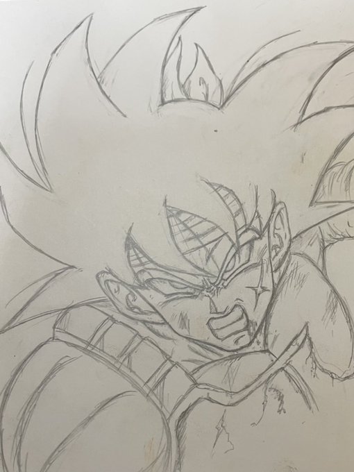 悟空の下書き終わってベジータ描いてます😇 早く色塗りしたい😊 #模写