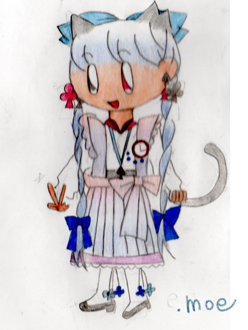 杏子ちゃん(アリス風のプリーツエプロン)。猫耳風の大きなリボンをつけているので、さくら猫のイラストが最も描きやすかったキャラでございます。是非、投票してね~ #猫耳コンテスト #猫耳 #イラストレーター #冬の創作クラスタフォロー祭り #今月描いた絵を晒そう #絵描きさんと繋がりたい