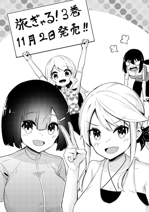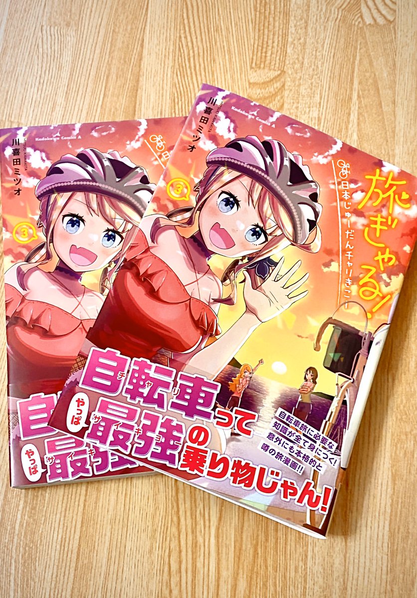 本日11月2日。旅ぎゃる!最終巻の発売となります❗ 2巻と同様カバー裏までおまけも描いて大容量となっています✨ミチカ達の楽しい旅を最後まで見ていただければと思います🚲 comiczin様では書店特典のイラストカードが付きますので、こちらもよろしくお願いします🎨 shop.comiczin.jp/products/detai… #旅ぎゃる