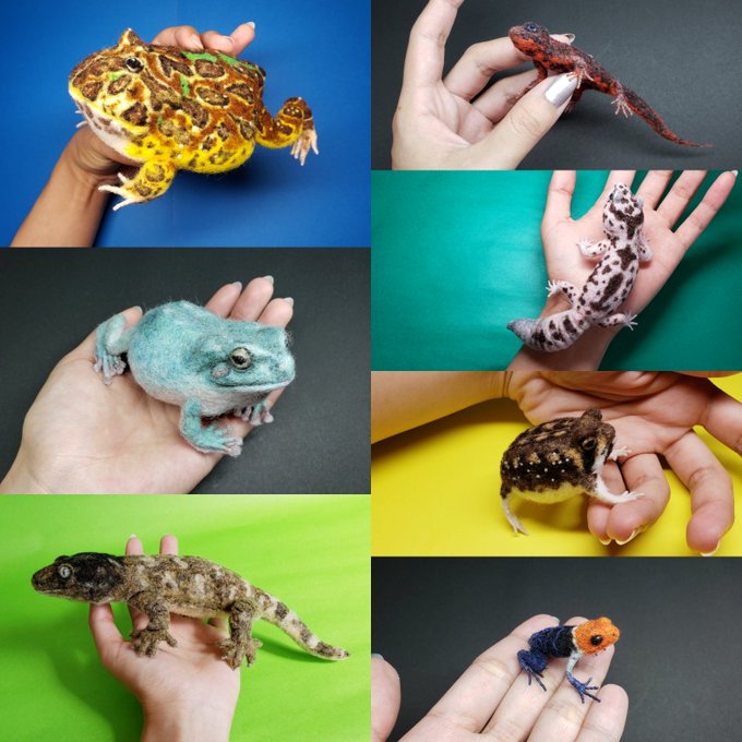 minneに出品しました ・アメフクラガエル ・ニシアフリカトカゲモドキ (1点ずつ) #羊毛フェルト minne.com/@kawamotokou