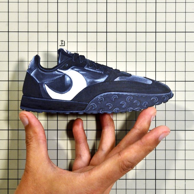 【今日の靴】02155足目 “sacai x NIKE” Air Footscape(FW2023) #Nikexsacai #sacai #sacaiofficial #chitoseabe #Nike #sneakers #illustration #copic #copicmarkers #スニーカー #切り絵 #イラスト #コピック