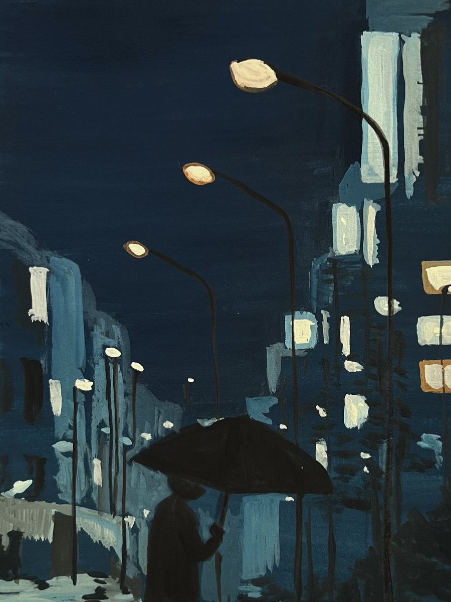 おはようアクリル “Dark blue nights” #イラスト #アクリル画