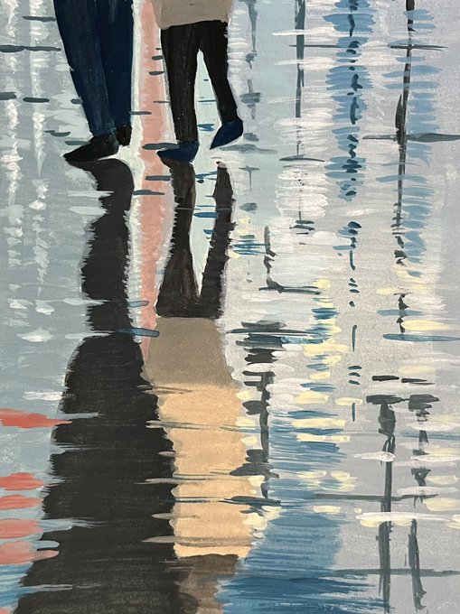 24 248 おはようアクリル “Two in the rain” size 18cm ×13.5cm(7"×5.3") 22/10/08 07:31