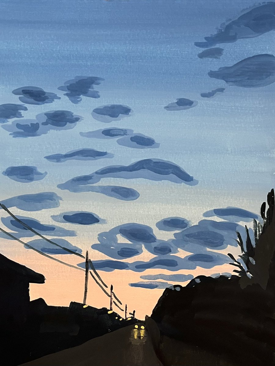 26 333 おはようアクリル “Dark blue nights” #イラスト #アクリル画 22/08/06 07:02