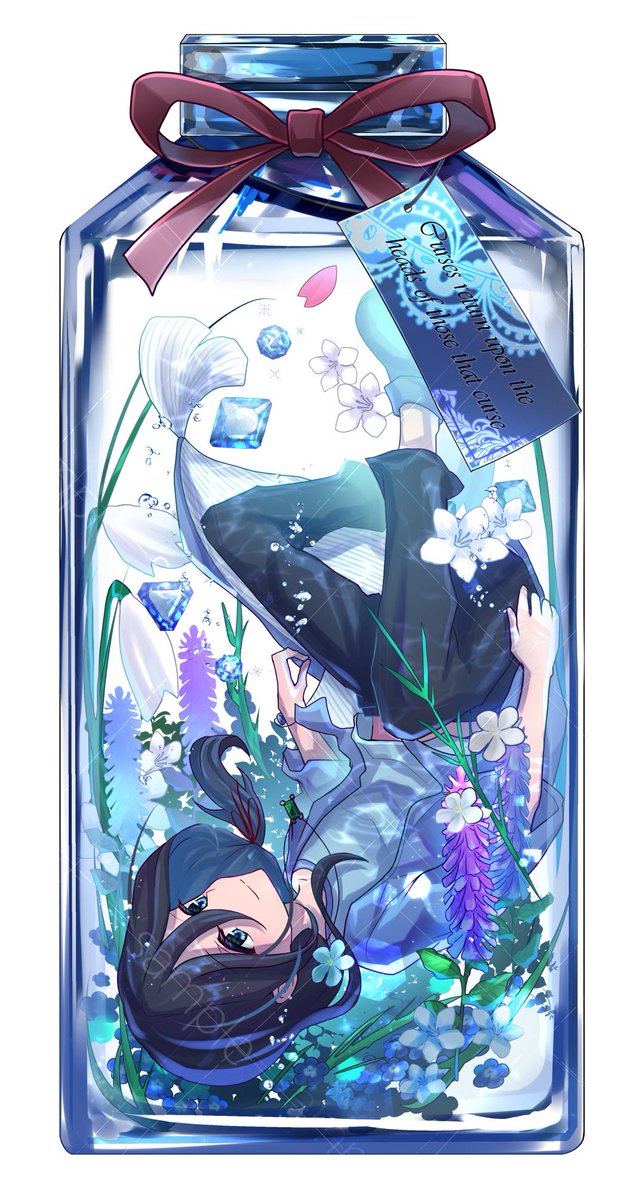 11 39 ご依頼でドミスト用ハーバリウム絵を描かせて頂きました!3作目のご依頼でした🙏 今回は深海に沈みゆくイメージのデザインとなっています🐠💎 実際にドミストにすると4枚目のようになります✨ お好みの花や宝石を閉じ込めたハーバリウム、如何でしょうか?😊 #有償依頼 #有償イラスト 22/02/25 08:52