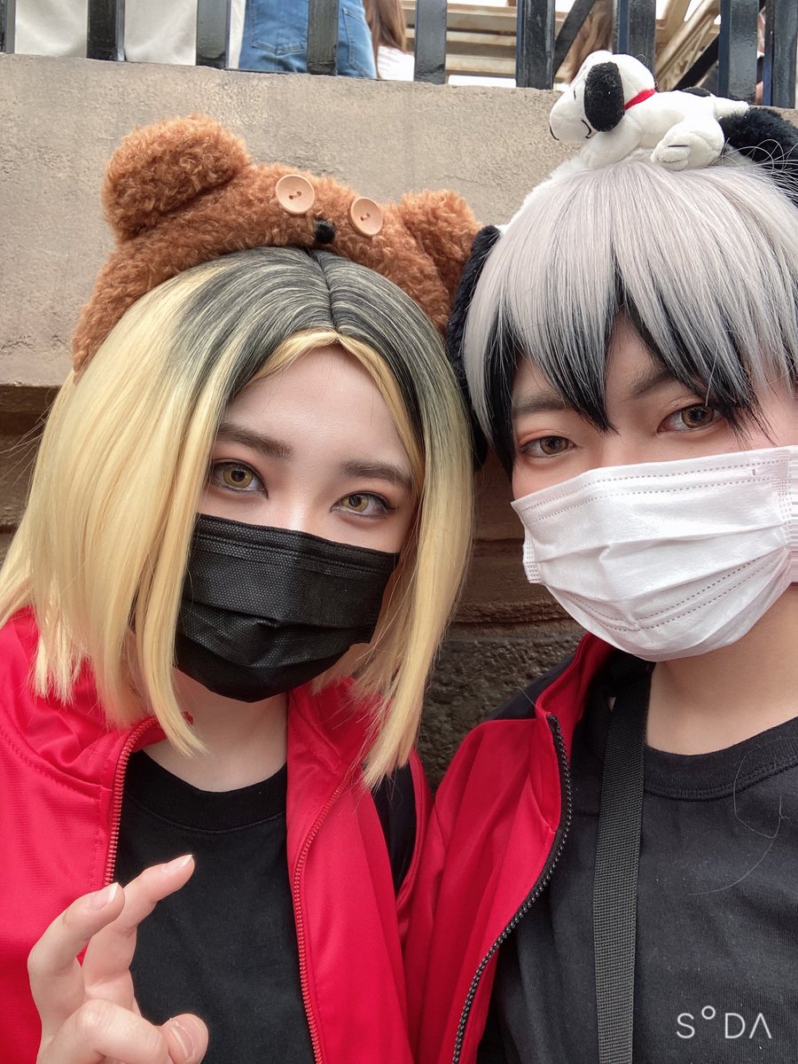人生初コス!! 研磨とインパしてきました 研磨かわ良すぎた(*´ `*) 研磨⇒@sudati1218 #ユニバ#北信介コスプレ#ハイキューコスプレ#初心者レイヤーさんと繋がりたい