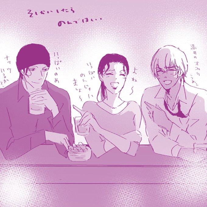 36 249 第2回のお題【嘘】 大遅刻。 計で3h30mくらい。 ※エビモブとシュがおしゃべりする話です。 #赤安ワンナイト・ドローイングアンドライティング 23/04/09 10:16