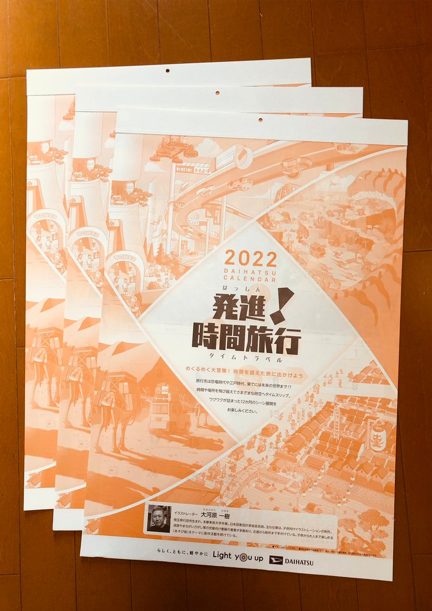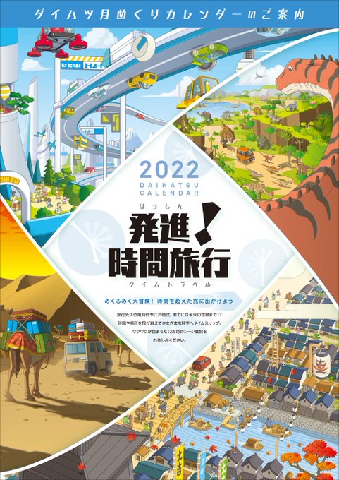 2022年版のダイハツカレンダーを担当させていただきました!。テーマは「時間旅行」。様々な時代の生活が感じられるような楽しい風景画を描きました。ダイハツオーナー様に1年間ご愛用いただけたら嬉しいです。 #ダイハツカレンダー #ダイハツ