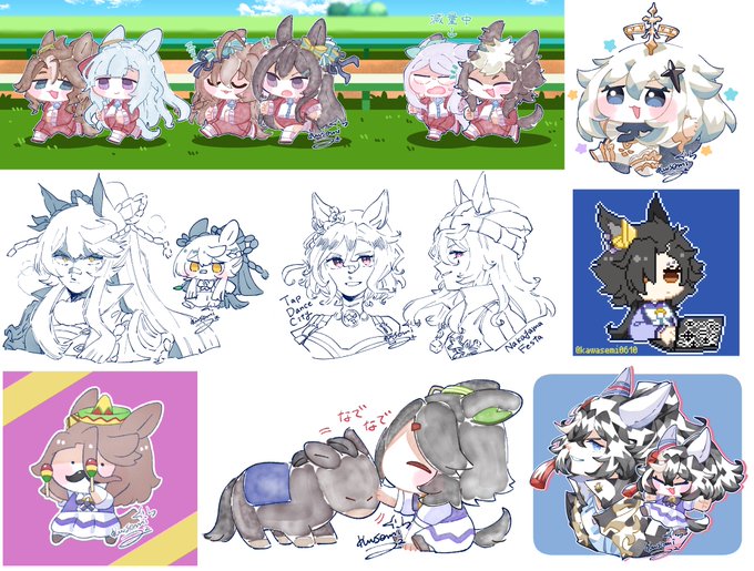 56 258 こんな感じのシール作ります間に合えばイベントで販売予定+あと3人描くヨ( ˘ω˘ ) 23/08/03 21:47
