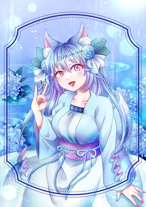 月守叶狐さん(@ym_kne77)のFAを描きました! 私のキャラの紫陽花ちゃんの格好が、叶狐さん絶対似合うやろってなって紫陽花ちゃんの服着せたら想像以上に似合ってました…! 今後のご活躍も応援しています🦊💠 #月詠参詣 #川瀬さんのスケッチブック