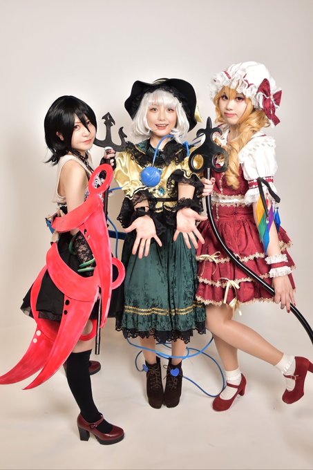【cos/コスプレ】 EX三人娘❤️💙🖤 フランドール ・スカーレット❤️ 月弓 愛蒼さん【@pomme_813 】 古明地こいし💙 柚雪りんさん【@yuyuri_hwa35 】 封獣ぬえ🖤 皮卵→me camera📸 アン中尉様【@lieutenantA 】 #東方全キャラ併せ0312