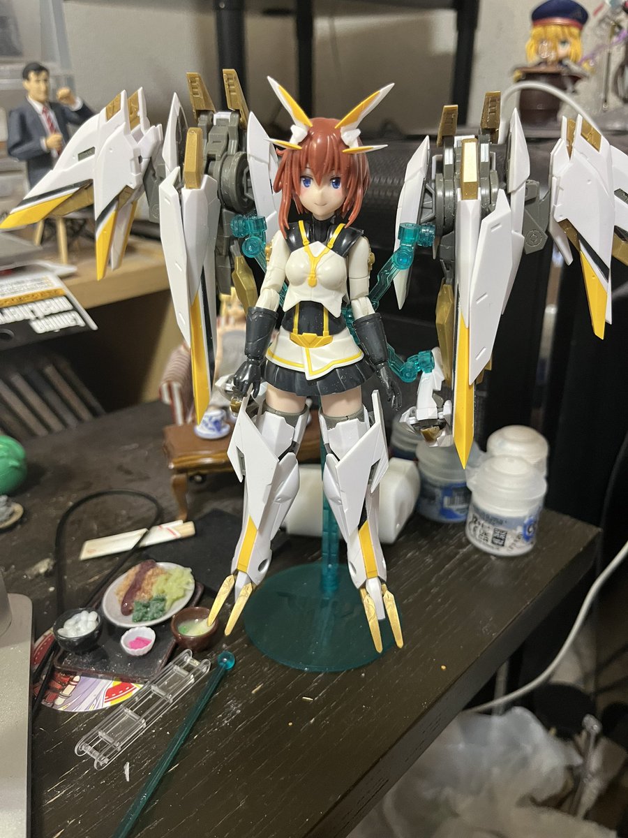 ライトニングガンダム・ライトニングブースターmkⅡ装備の素組。本格塗装は、順番待ち。 アニメとの印象とは、細さが少し異なるけど、ポーズのバランス取れるなら、いいかな? リガズィとゼータの中間? 後でアンケートだしとこ #ガンプラの画像貼るとRTされると聞いて #ガンプラ