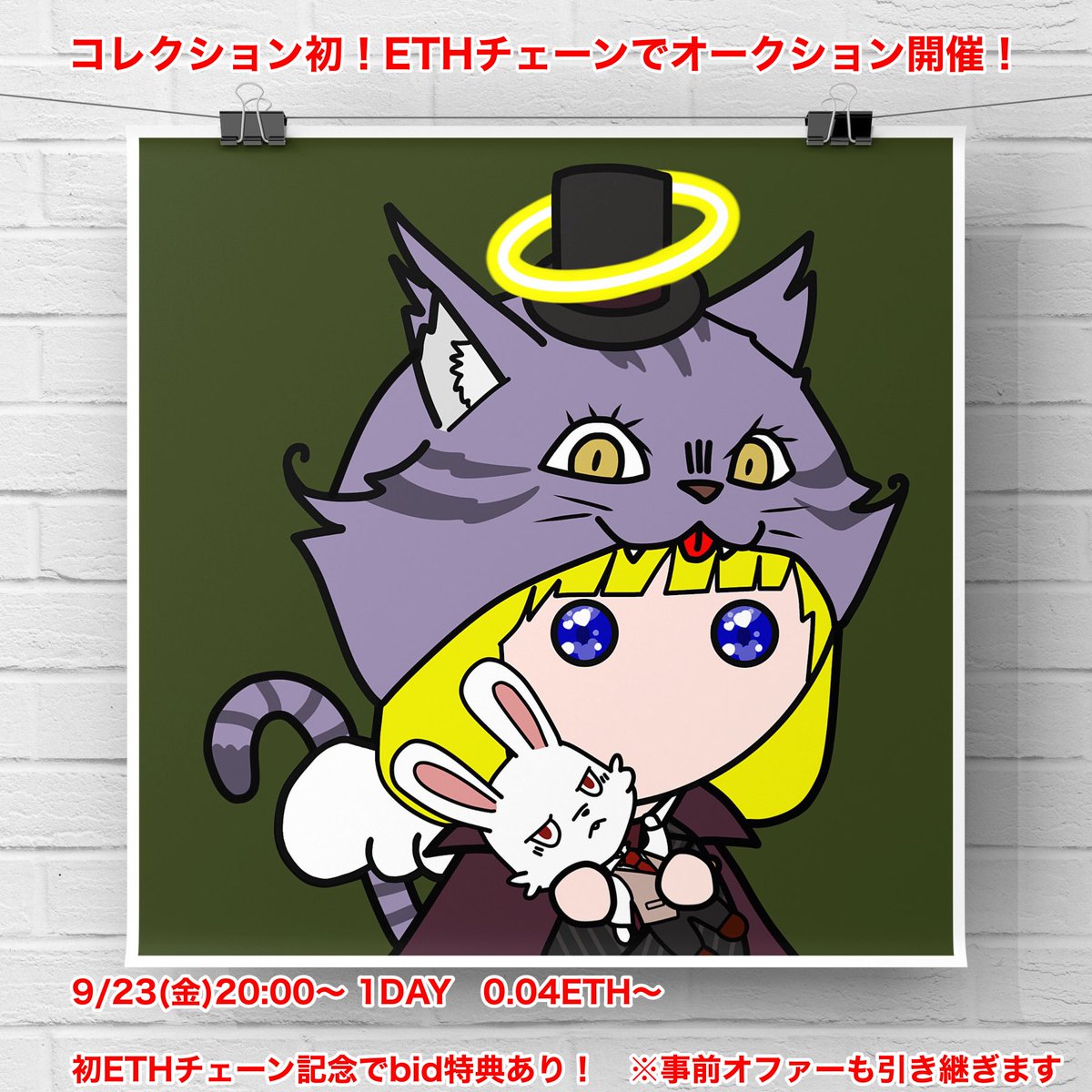 何とか間に合った💦 あおえういさん(@AoeUiNFT)の 「レイちゃん誕生日&小説NFT記念企画」で #CryptoBlue ファンアート描かせていただきました❣️ レイちゃんのネコちゃんが、レイちゃん人形を大事にかかえているちょっと異色のファンアートです😳