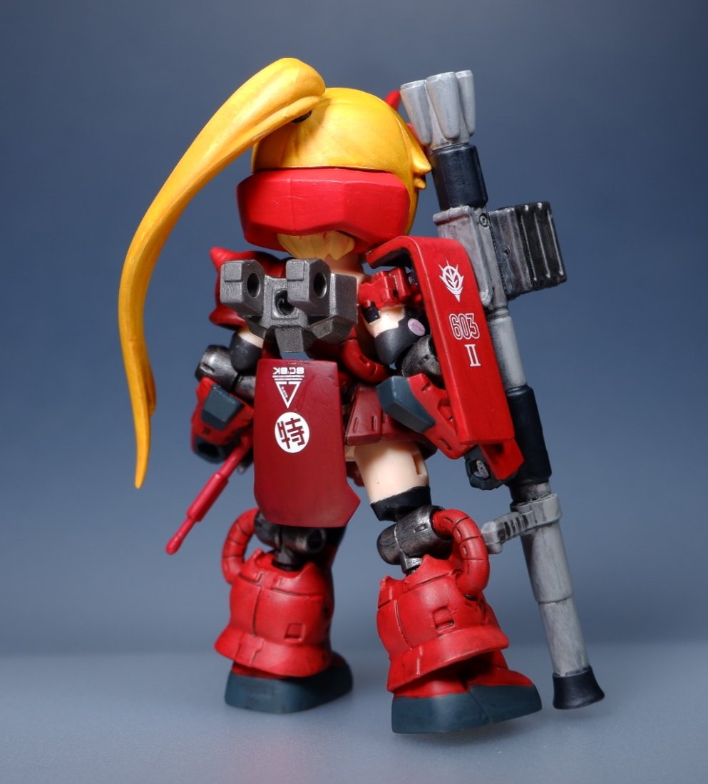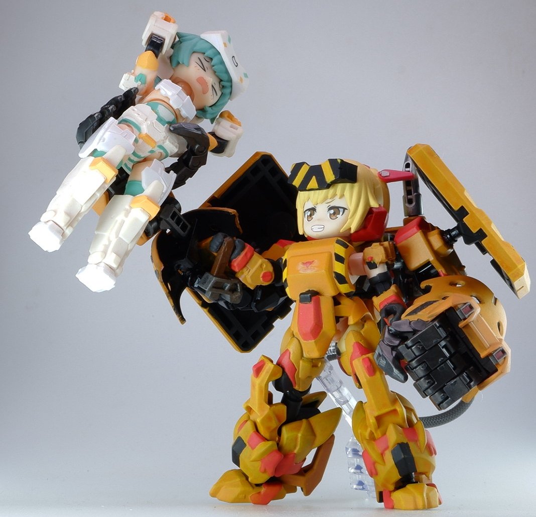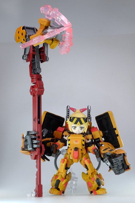 強力無双迅雷、略して強雷 格闘戦に特化したパワーファイター。愛用の大槌「武御雷」でなんでも粉砕する、予定。 いたずら好き仲間のD-Phoneを捕まえては振り回す姿がしばしば見受けられるようだ。 #デスクトップアーミー