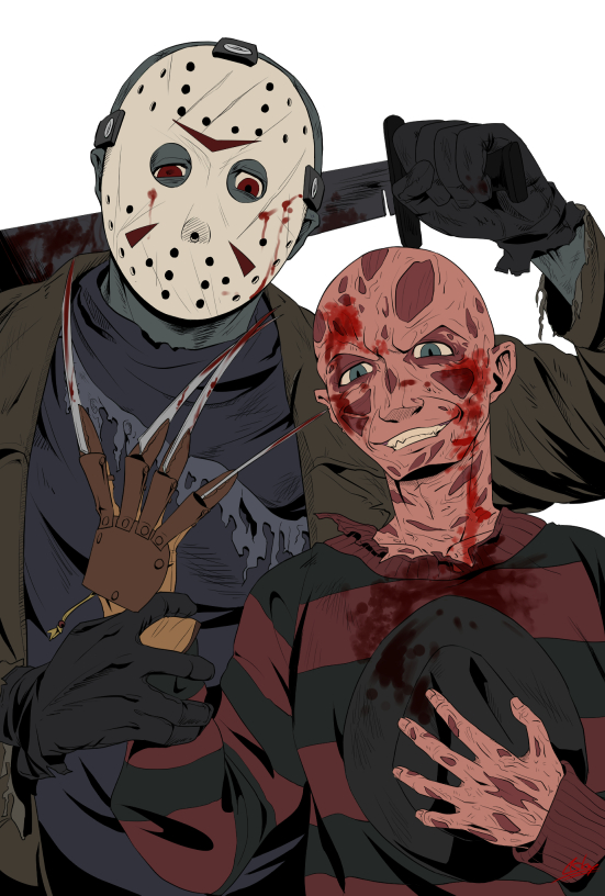 昔描いた絵をリメイクしてみた。ホラー美少女のフレディとジェイソンとアッシュ