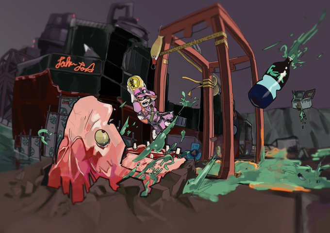 カタパットのミサイルを避ける事に必死でモグラに食べられるイカの絵を描きました。 #スプラトゥーン3