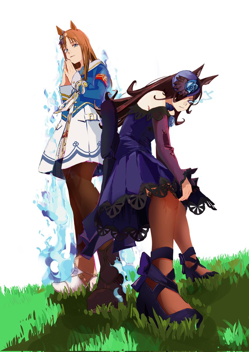 グラスワンダーさんとライスシャワーさんの絵を描きました。 #ウマ娘