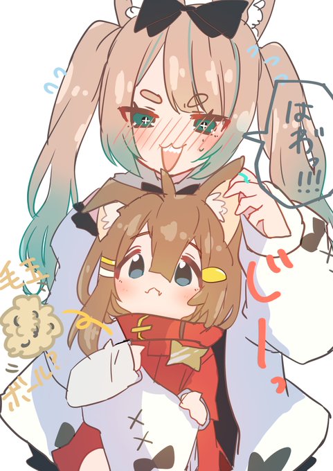 1 9 おととい参加したイベントで写真撮る隙がなかったので、落書きしてみました(´▽`) まるで空中椅子してるかのような私の膝の上に乗ってくれて、袖を掴んでて可愛かったまめひなたちゃん・・・🥺(毛玉ボールみたいなの出してたw) #VRCイラスト 23/04/28 01:08