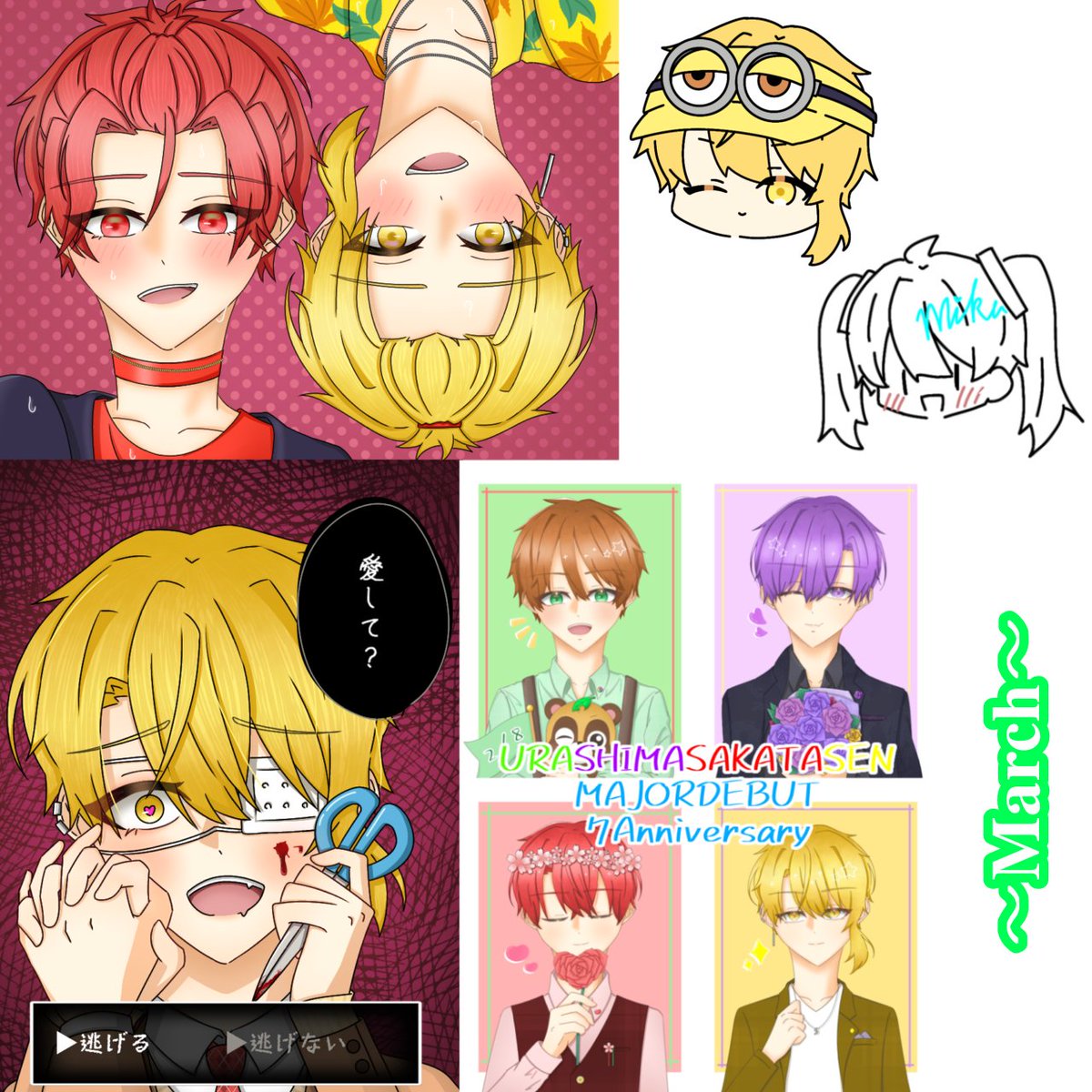 浦島坂田船、メジャーデビュー7周年おめでとうございます!🥳👏🎉 これからもずっとずっと大好きです! #浦島坂田船メジャーデビュー7周年 #うらたぬ王国の美術館 #しまーと #坂田です #センラの絵ぇやん