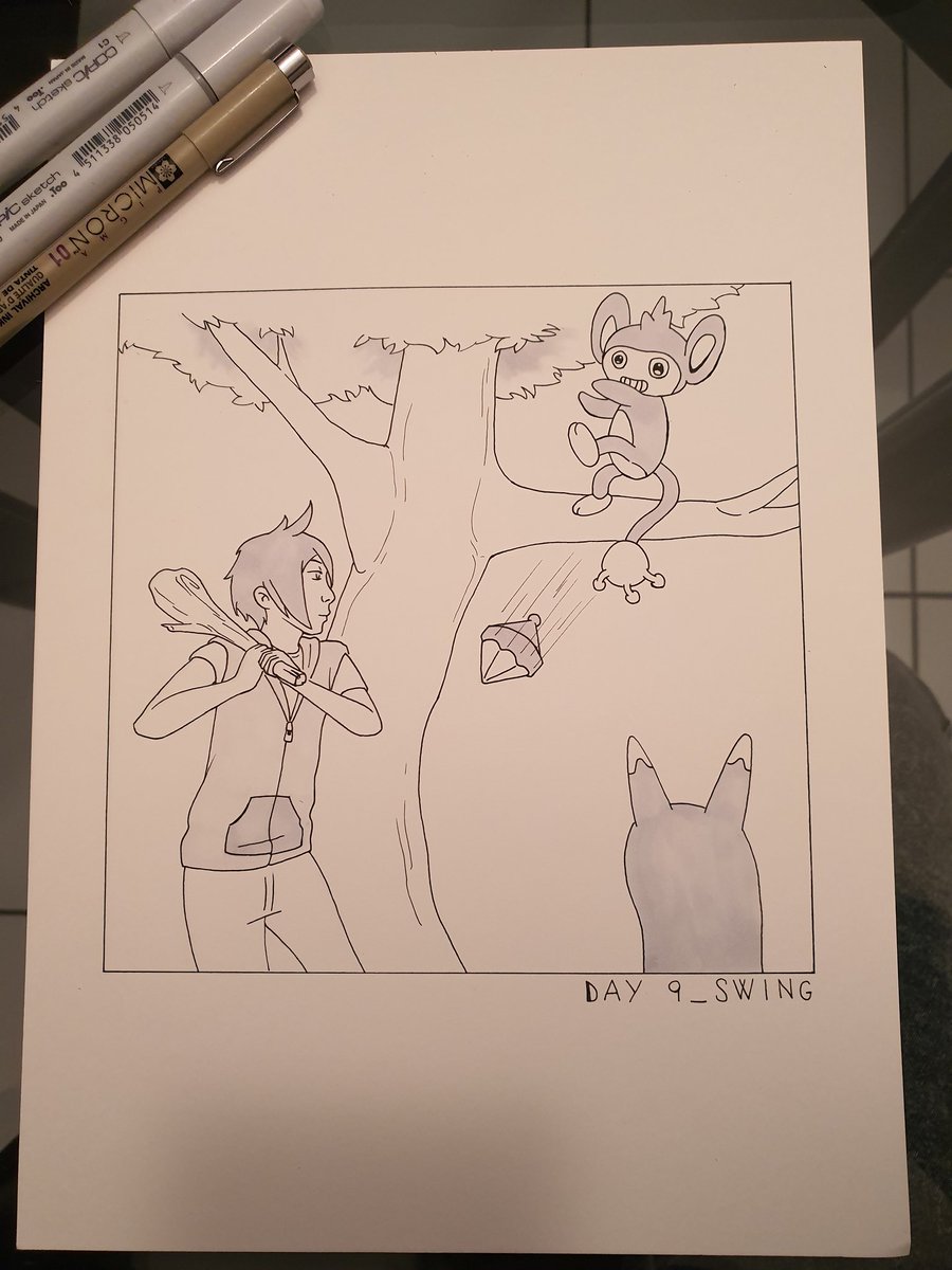 #Inktober Day 9: Swing. A wild Aipom appeared...and he throws a berry. #Inktober2019 #Haikyuu #hq #Pokemon