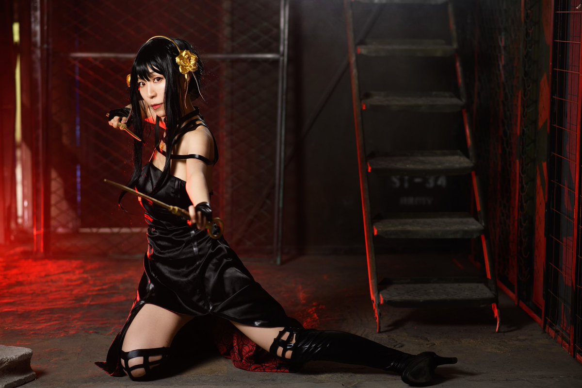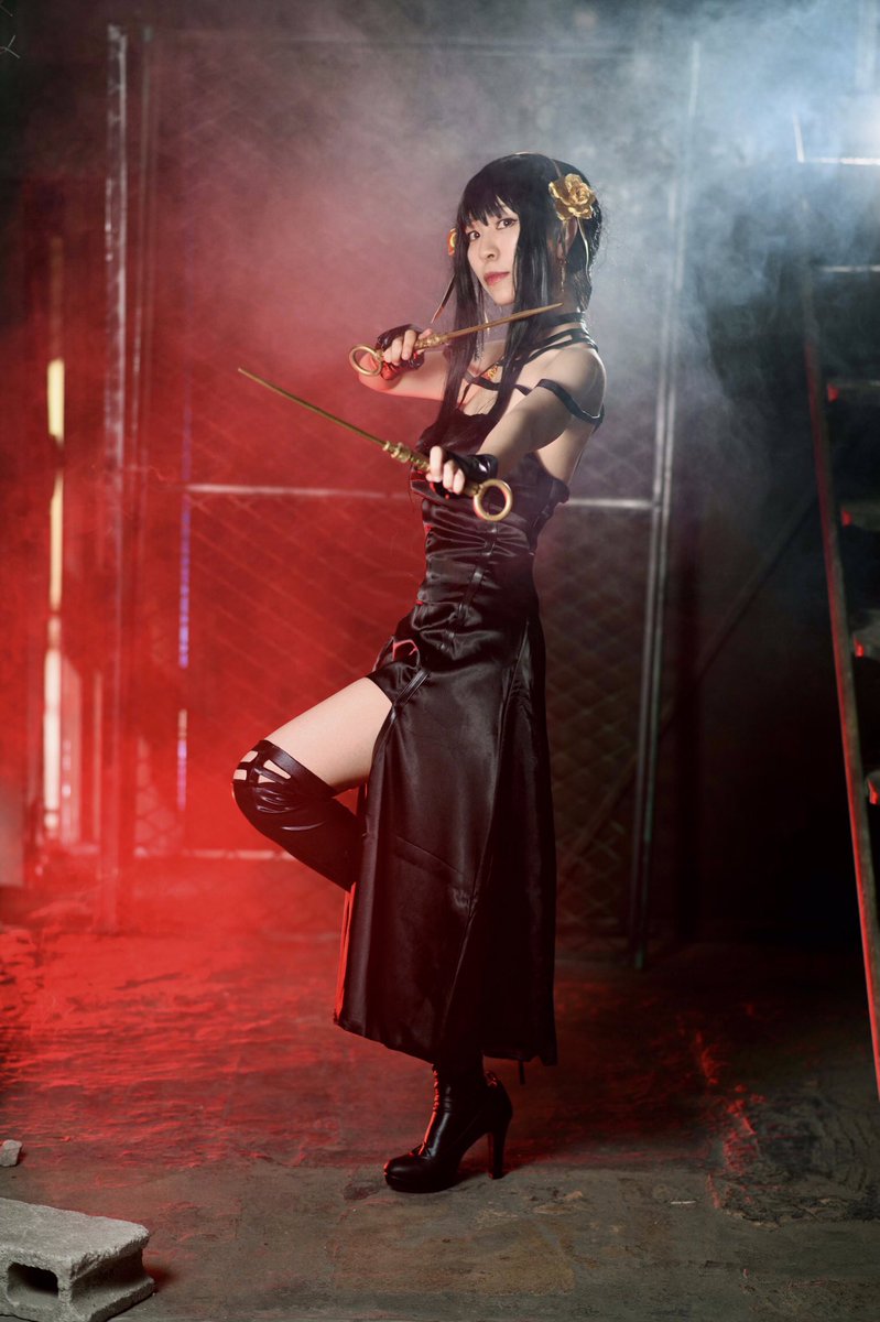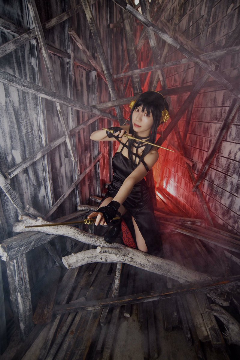 #今年も残りわずかなのでお気に入りの4枚を貼る #コスプレ総決算2022 ⚠︎【 #cosplay 編】 SPY×FAMILY ヨル🥀コスプレ 真夏、冷房の効きづらい某廃墟系スタジオさんにて…共に頑張っていただきました!🙏 skyさん( @NtSkymura )ありがとうございました🥲