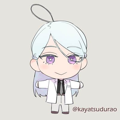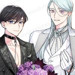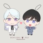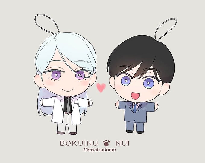 今回は描き下ろしあります✨おめでたいに便乗して契約式の二人を描かせていただきました。立ち絵のアクスタが大好きなので、公式で作っていただけてめちゃくちゃ嬉しいです🥰南本くんを蘭先生と一緒にお散歩へ連れて行ってあげてください🐕 twitter.com/eeo_store/stat…