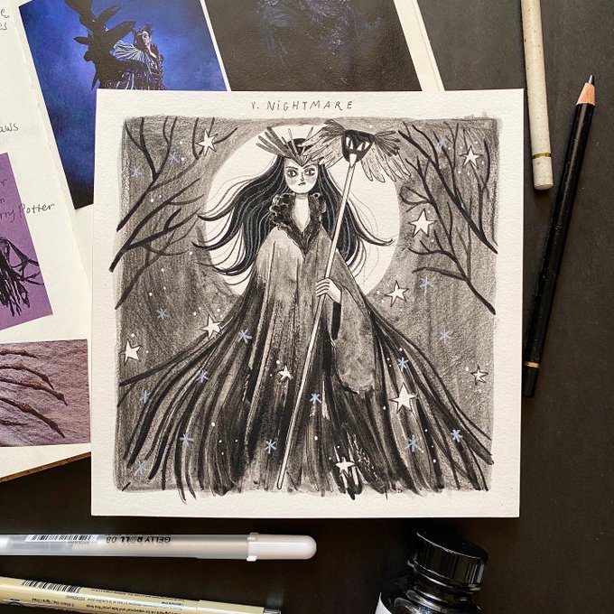 5/31 @redolaf ‘s #folktober2021 : NIGHTMARE 🌒 This Nightmare Lady is inspired by Von Rothbart from Swan Lake, one of my all-time favourite villains. #inktober #inktober2021 #folktober #nightmare #cauchemar #vonrothbart #swanlake