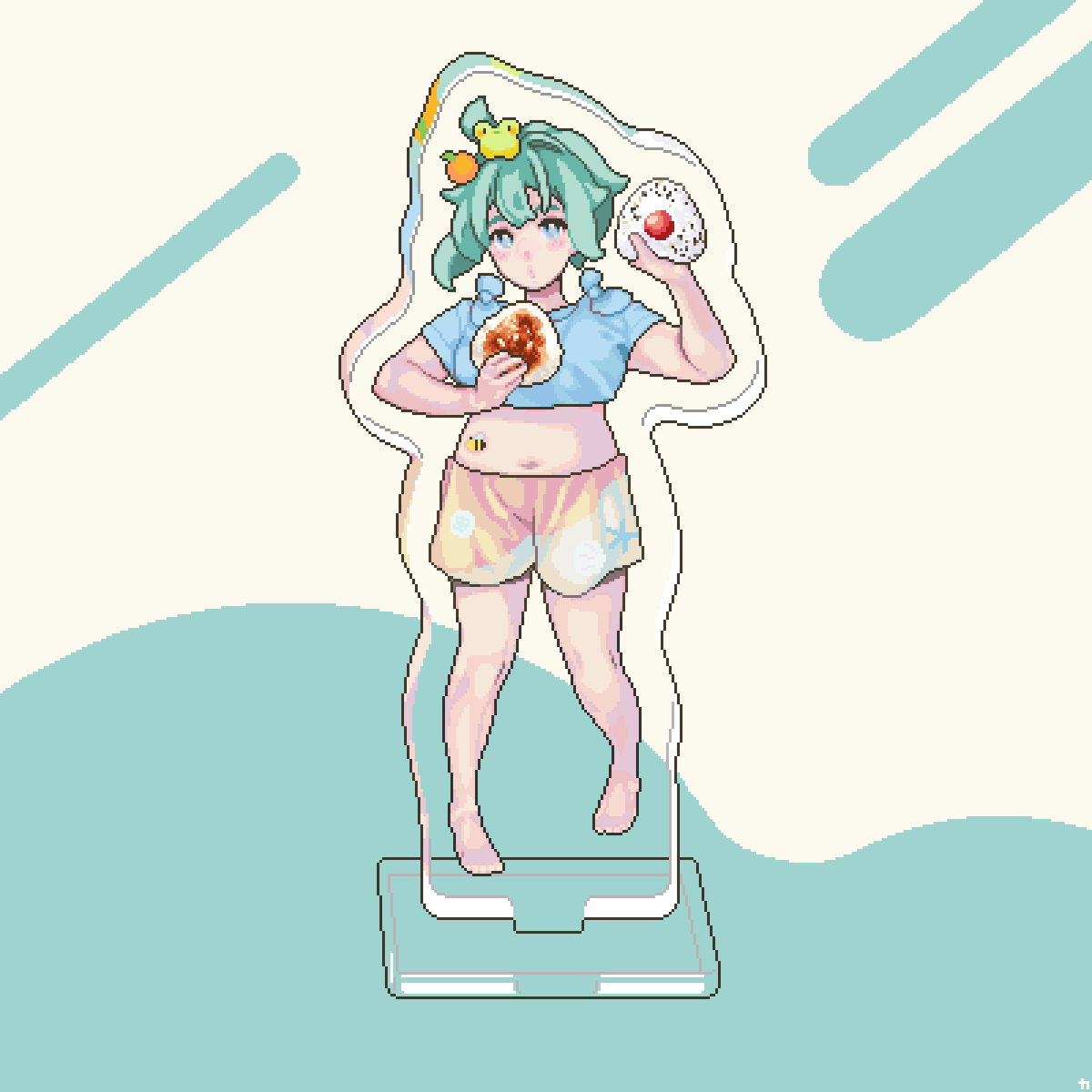 13 97 おにぎりワッショイ!!みたいなポーズのアクリルフィギュアっぽいドット絵 #ドット絵 #pixelart 23/06/22 01:56