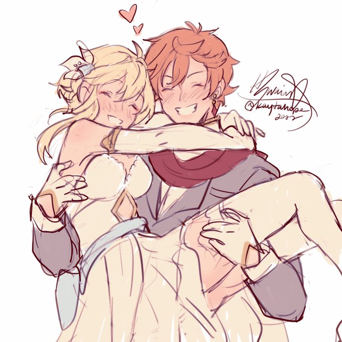 Here’s a super sketchy just married Childe and Lumine 🥰❤️ #chilumi #childe #lumine #tartaglia #genshin #Genshinlmpact