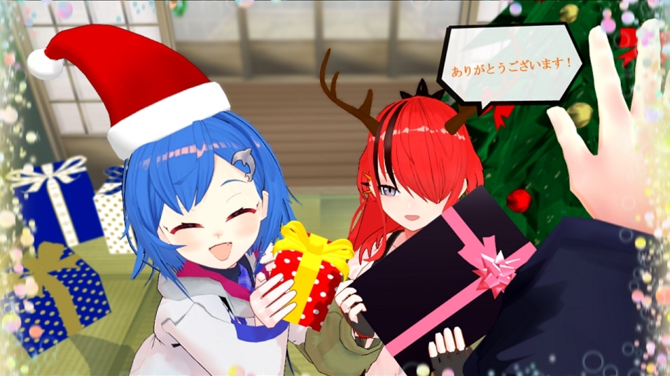 前にこんなイラストを見た気がする・・・ 36人凸企画でデレデレしてた舞元の後日 舞元からクリスマスプレゼントをもらうレインパターソンと西園ちぐさをうらやましく思う、北小路ヒスイだけどそうじゃない返しに言葉を失うヒスピ (舞元視点です) #ヒスイワークス #レインの依頼書 #ニシゾノート
