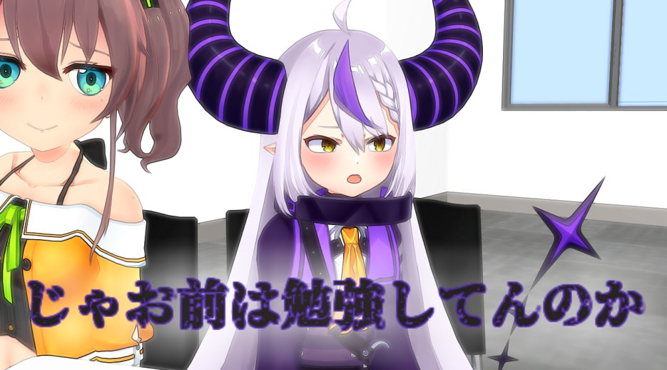 今作ってるにじさんじの動画のワンシーンのラフ画像 星川サラと樋口楓のオフモード時の一枚 #にじさんじ #サラ星図 #でろあーと