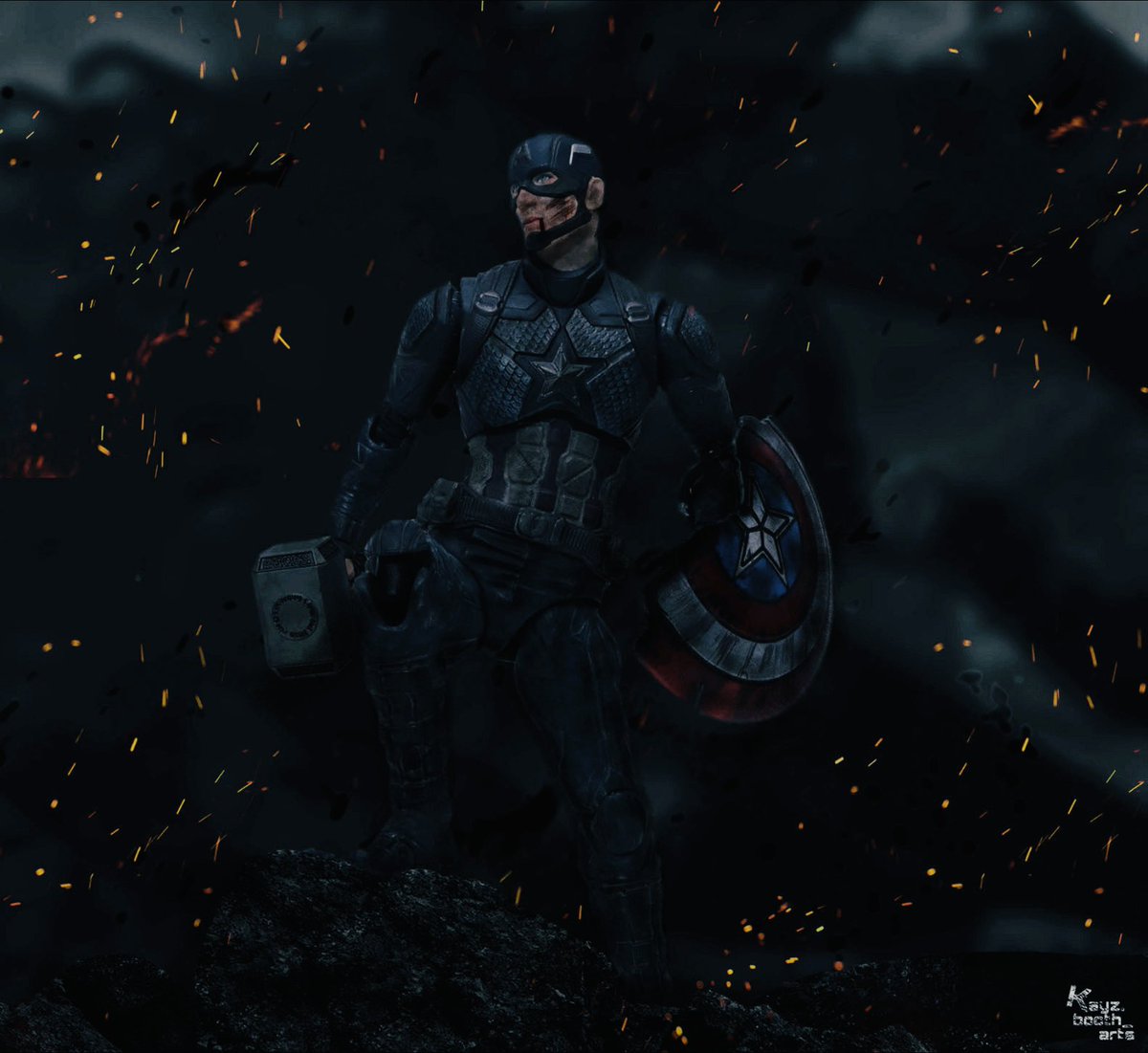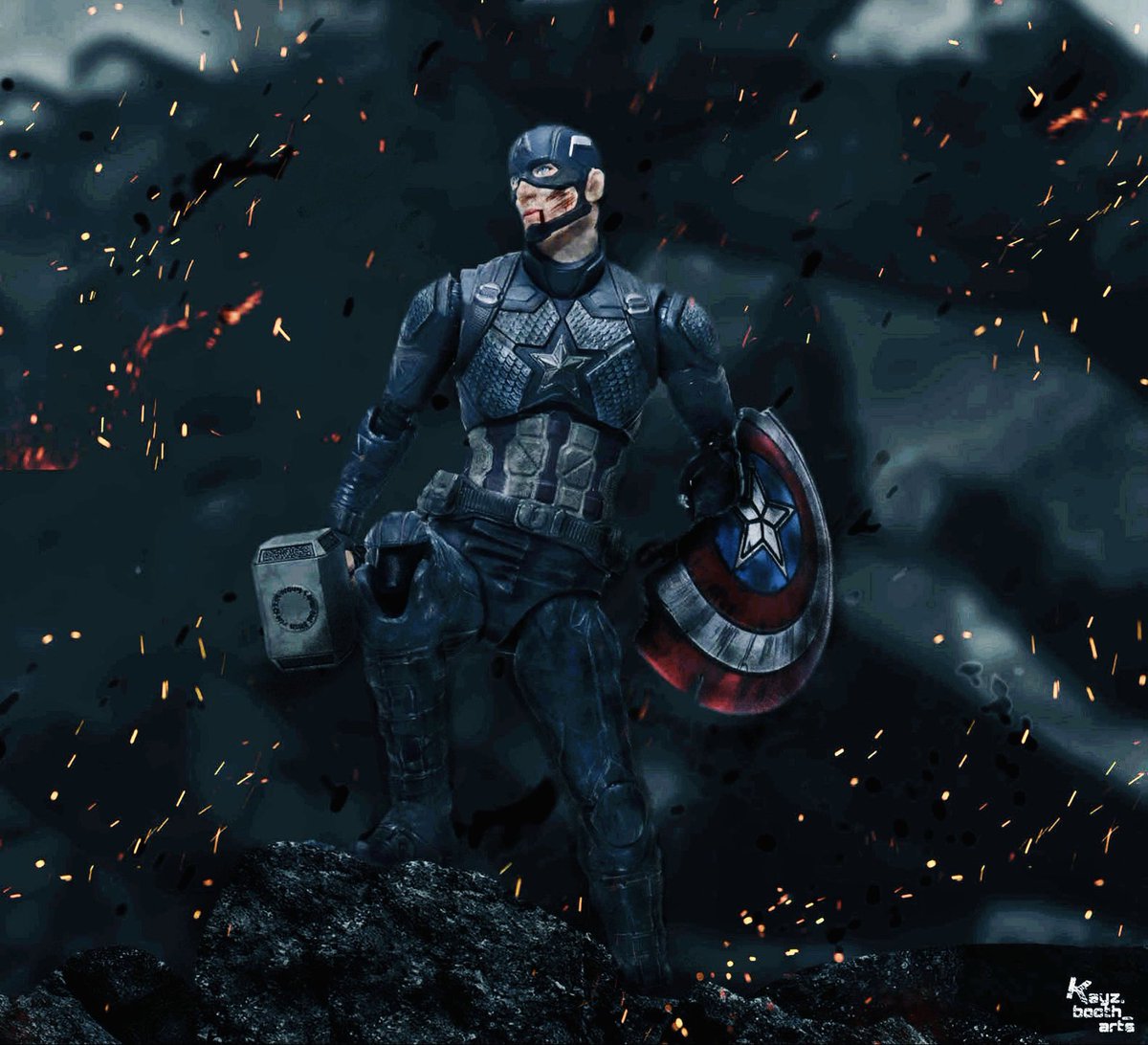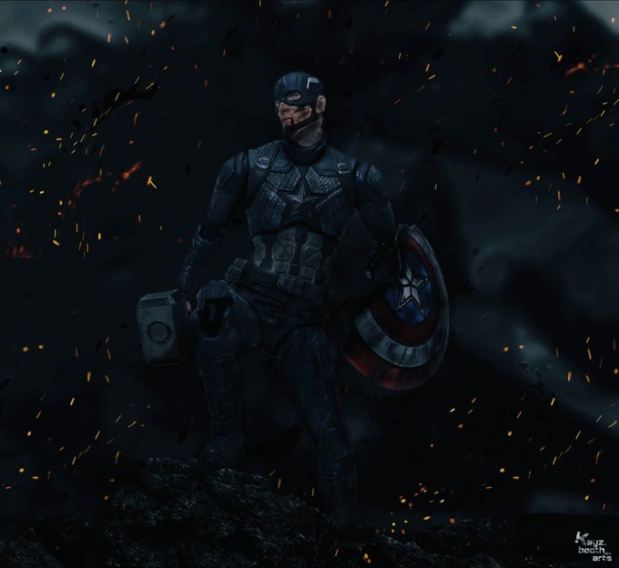 ちょっと暗過ぎたかしらね… と思い明るく再編集して再掲🙇♂️💦 こっちの方がいい気がする😑 #キャプテンアメリカ #オモ写 #photoshop twitter.com/kayzboothart…