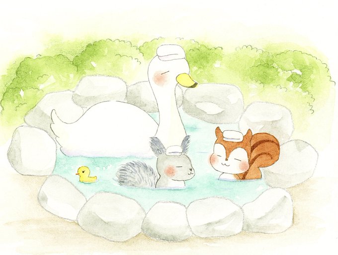 #水彩行進曲 3/24のお題「温泉」 ほっこり...♨️