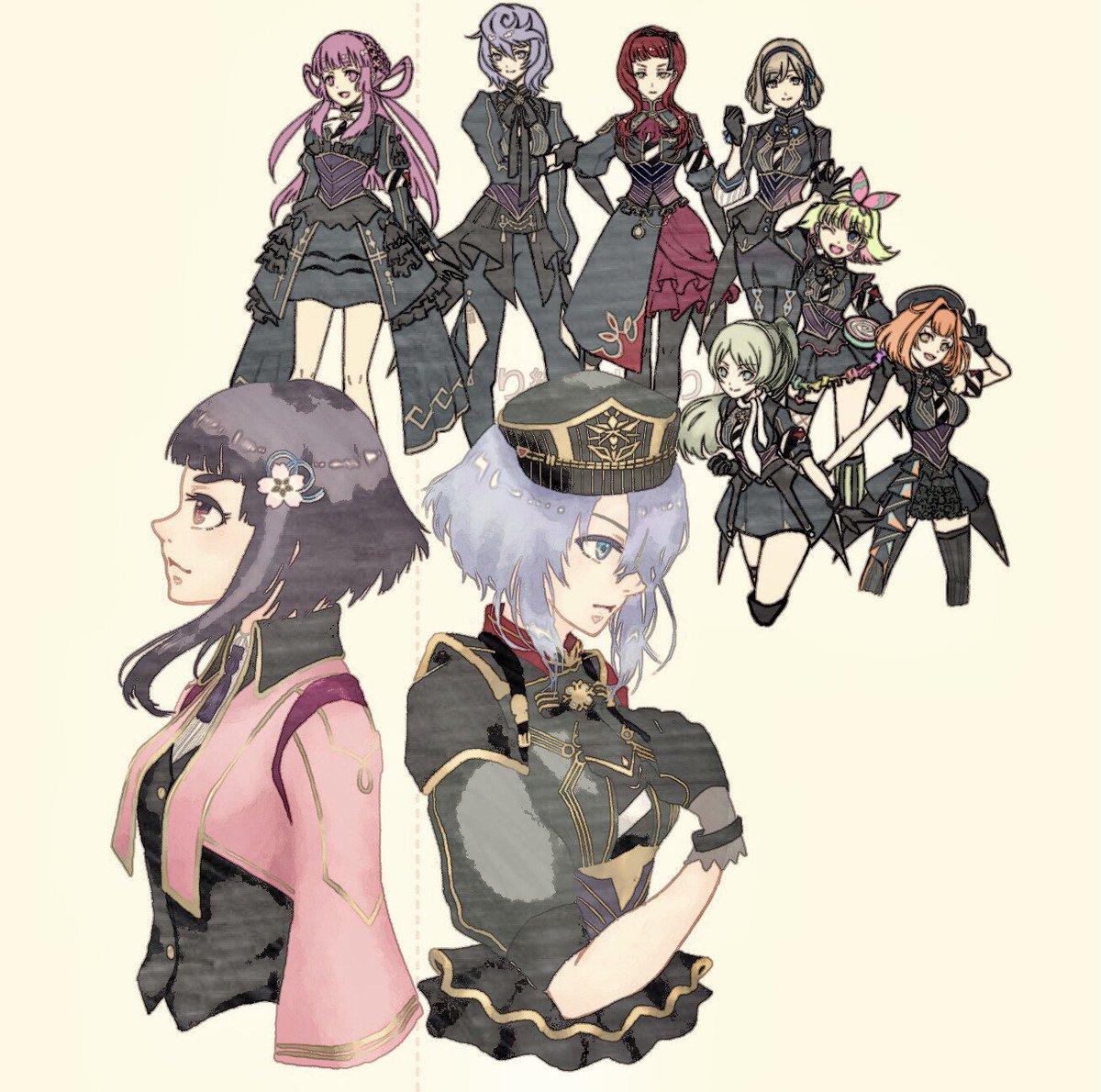 帝撃メンバーは服色違いだしフリル無いし髪型めんどくさい乙女たち以外は線画が割とサクサク進むんだけど、ぶらっくぅぅぅぅぅ💢💢💢(尚まだ色分けしただけなので先は長い← 可愛いは罪深い