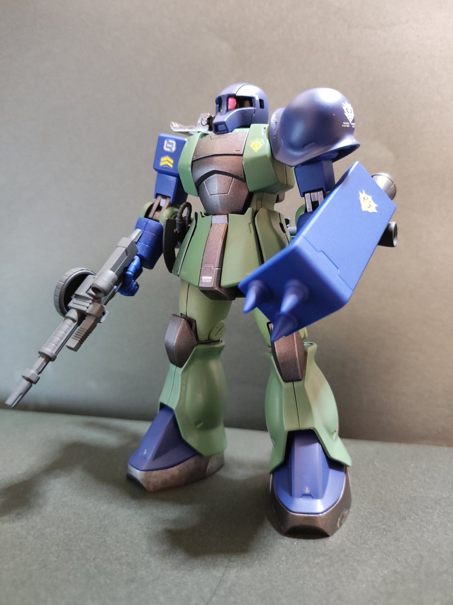 ソロモンに帰りたい人専用HGザクⅠ 塗装で一気に強キャラ風味に。 ふともも合わせ目消し完了後に膝関節が前後逆ハメに気づき、やむなくバラし。 モールド風になったので良しとしよう。 #ガンプラ #ガンプラ好きと繋がりたい #ガンプラはどんな自由な発想で作ってもいいんだ #アナベル・ガトー