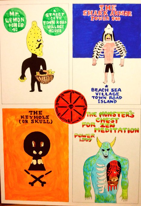 5 67 四面シリーズ096 ミスターレモン サメ鎧 秘密の鍵穴あるいはドクロ モンスターの胸の中で禅 #イラスト #イラストレーター #ポップアート #ゆるキャラ #モンスター #illustration #popart 23/03/23 23:08