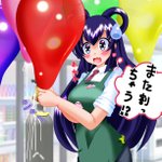 【お題箱より】 関東地区ローカルのディスカウントストア(〇ヂャース)の看板娘(〇島〇ぢゃミ)の、風船の販促ポップ風の絵、またはお店で配る風船(なぜか16インチくらいの大きめ)をヘリウムボンベで膨らまして、つい洋梨レベルまで膨らまし過ぎちゃった絵をお願い致します。 #odaibako_kazenofunet