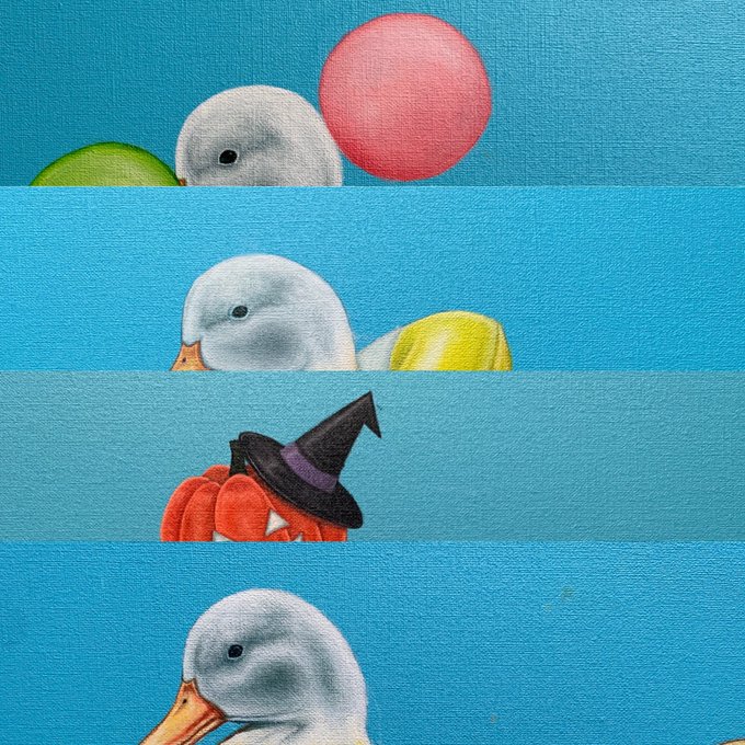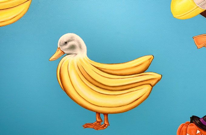 #つくしの半年大作展 \\10日目// 残すはあと4日です! F50号サイズを展示する事はしばらくないので、この機会にぜひ見に来てください! 本日は在廊していませんがグッズは置いてあります🐤🍌 #バヒル #イラスト