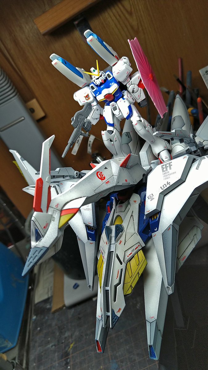 0 1 HGペーネロペーのFFユニットに同じ1/144の旧キットのVガンダムを載せた、違和感なくカッコ良い。 #ガンプラ 19/11/24 21:49