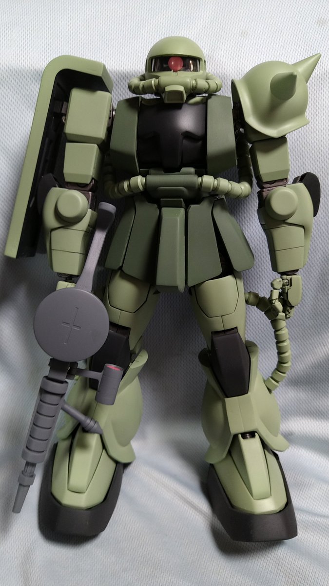 PGザクが出来上がった、モールド消して丸まらせてPGじゃなくHGにも見えそうなスッキリ感だがこういうザクが好きだ。 #ガンプラ #ザクの日