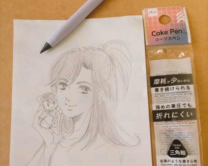 6 15 コークスペンを買ってみたので落書き H位の薄さだけど描きやすいし消しゴムで消える~! 23/07/10 08:23