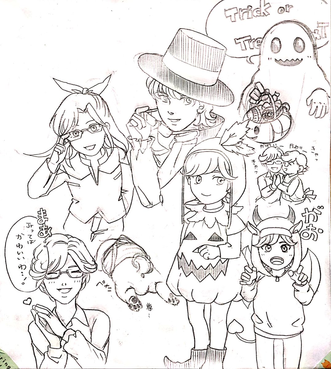毎年バニ誕に子バニちゃん描いてきたけど今年は変えたので何か物足りなさがあったから子バニちゃんハロウィンコス描きました それみてキャッキャするママ&サマンサさん おまけで楓ちゃん