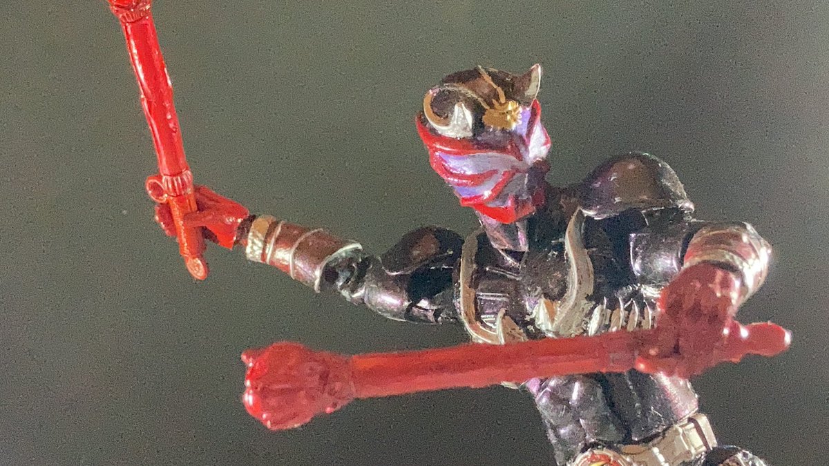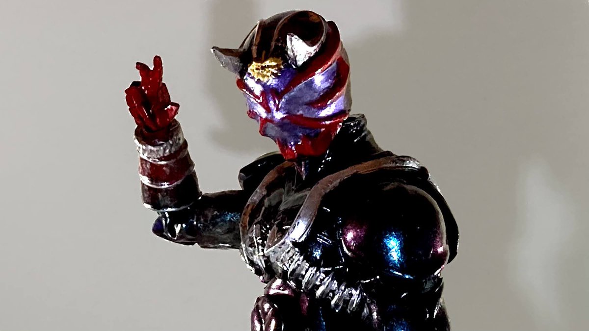 4 26 仮面ライダー響鬼のソフビを改造しました!布じゃなくてビニールテープで作ってた時代です。百均のマジョーラ、今見るとイマイチ💦 #ソフビ改造 #仮面ライダー響鬼 22/07/16 19:54