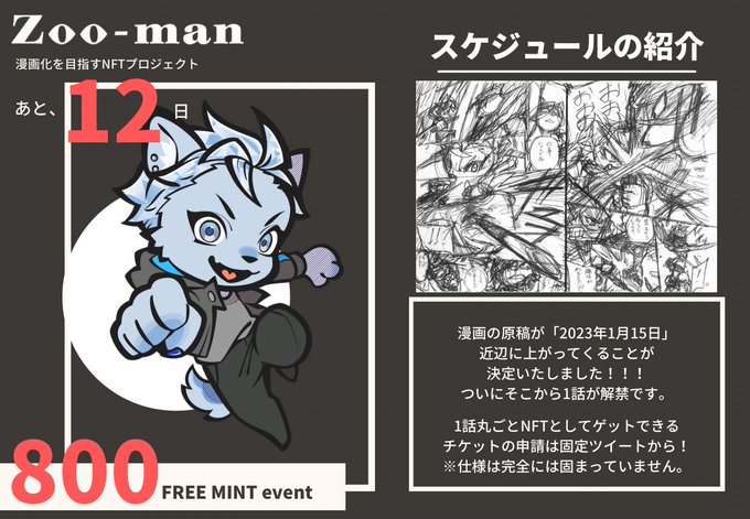 【超重要なお知らせ】 漫画を作ってるNFTプロジェクト Zoo-manの第2話が開放されます! その第2話のNFTと漫画に登場するヴィランズのNFTがランダムで手に入る… そのNFTは ✅ミントサイトがありません ✅ガス代はいりません ✅仮想通貨もいりません 1枚1,000円(税込)にて販売… twitter.com/i/web/status/1…