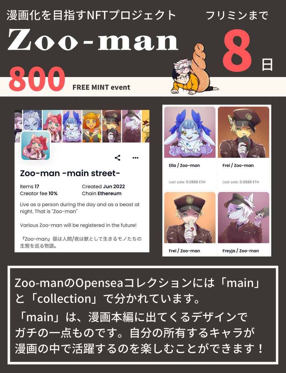 【Zoo-man】 応募させていただきました! また再び大阪へ!? いけますように☺️ Zoo-manは漫画×NFTの掛け合わせで新しい楽しみ方を創造するプロジェクトです。 日本のNFTマーケットHEXAにて 販売実績一位🥇 #Nコレ大阪 twitter.com/nftcolor22/sta…